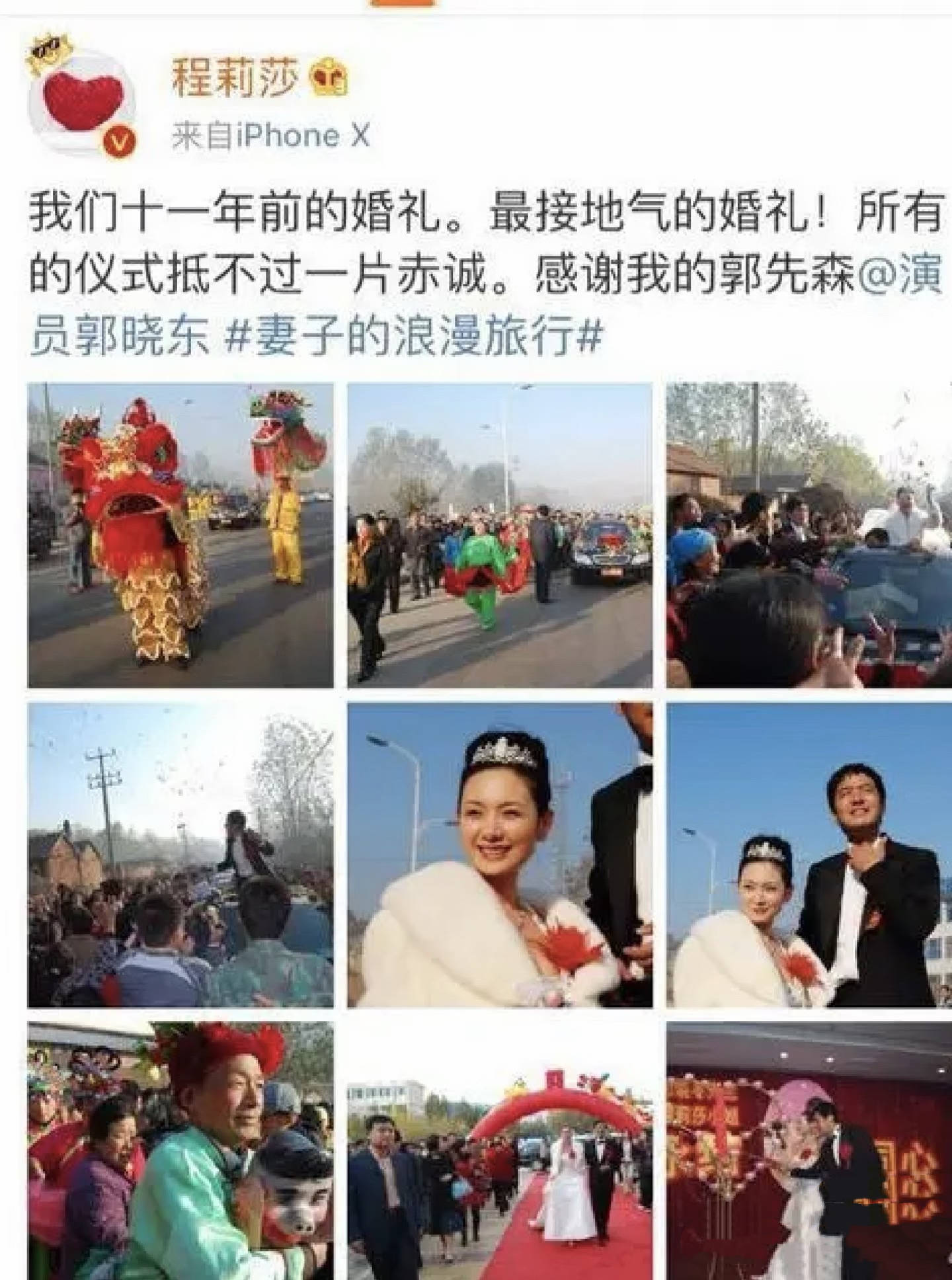 在这段感情中,程莉莎似乎是一直包容和妥协的那一个。甚至他们的婚礼都选择在农村举办,郭晓东风光无限。娶了漂亮的城里老婆,还什么事都听他安排。