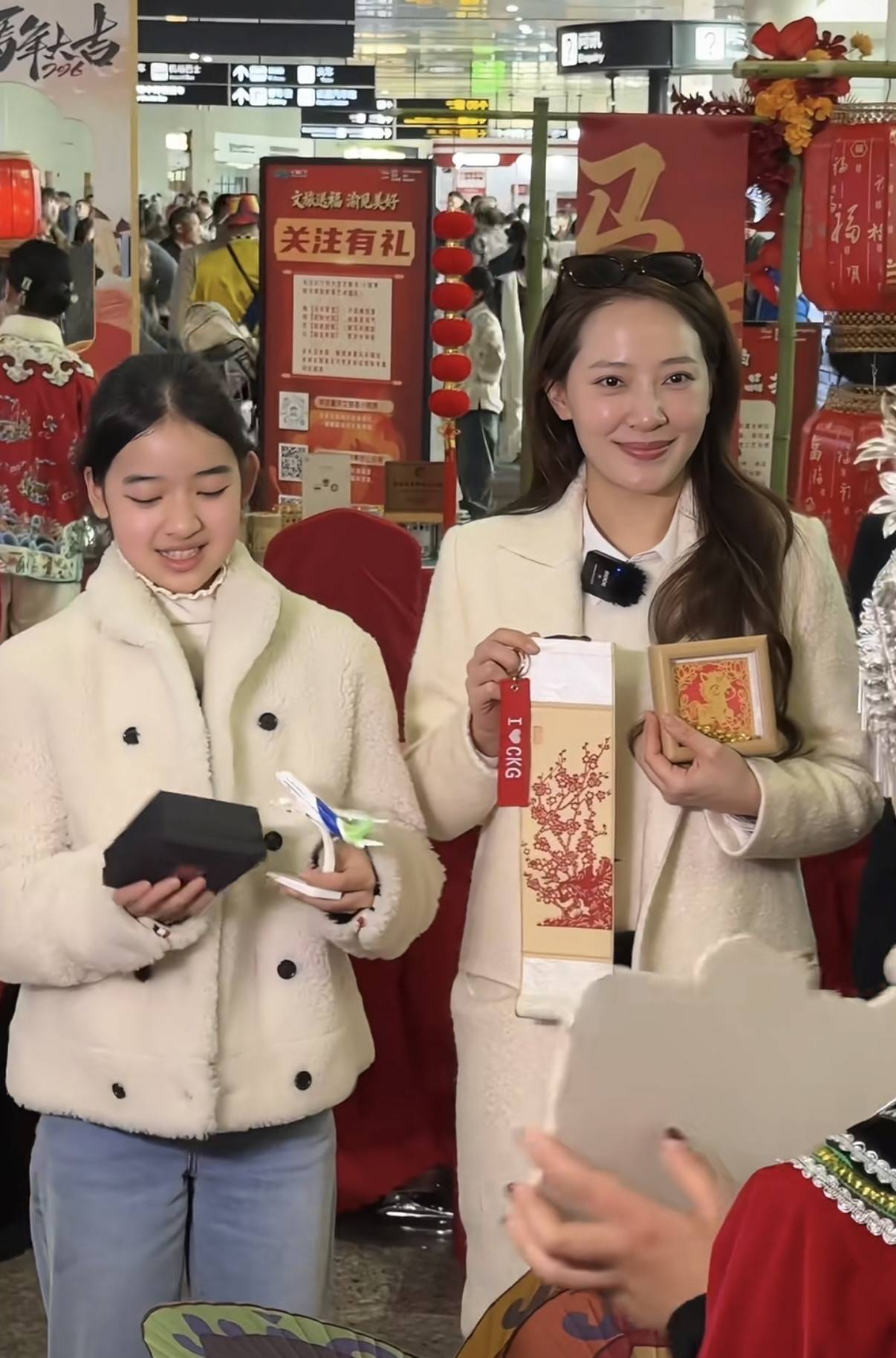 当天聂远穿了一件枣红色的皮毛外套,休闲风的款式很帅气。女儿穿了一件白色皮毛外套,扎着高马尾。