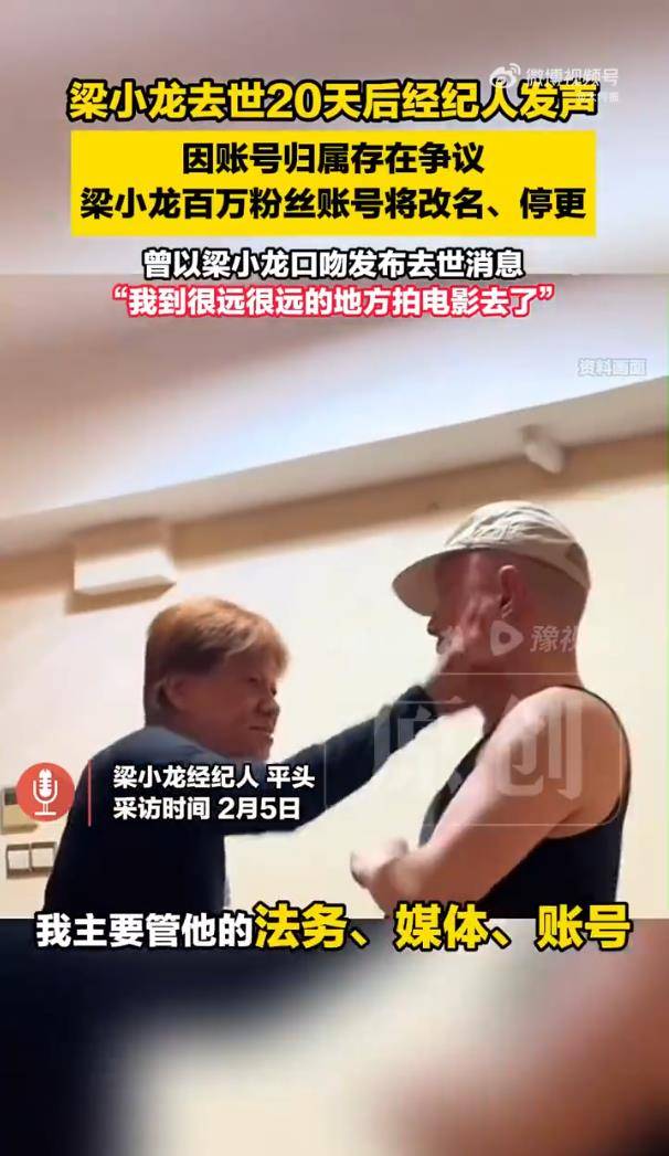 梁小龙去世后,该账号曾以他的口吻发布了一条充满离别诗意的消息,平头承认那是他模仿师父语气所写。如今,身心俱疲的他宣布账号暂停更新,并预告在2月25日后,账号将更名,交由“真正爱师父的亲人续缘”。