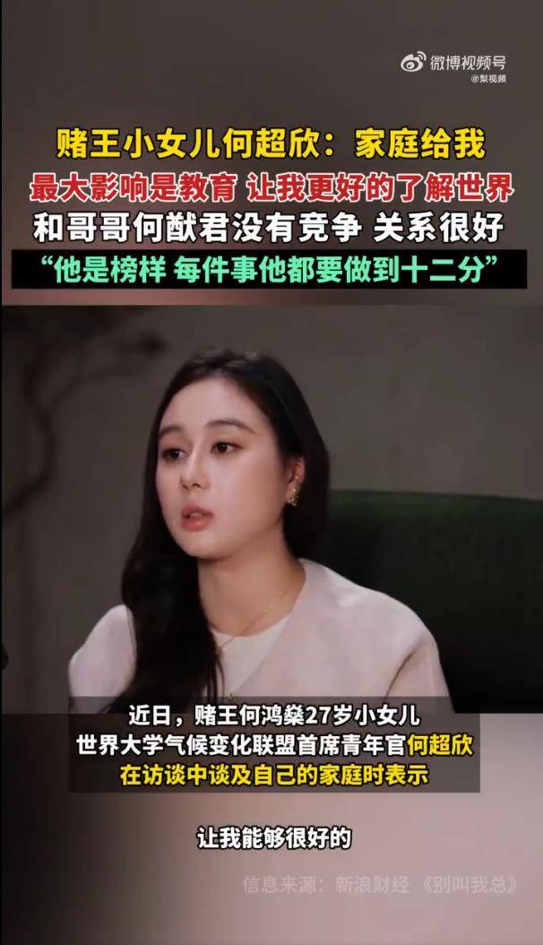 据2月6日报道,赌王幼女何超欣在《别叫我总》节目里的一番话,让外界热议的“家族竞争剧本”彻底翻了车。当被问及与哥哥何猷君的关系时,她一句“我们两个关系很好,没有竞争”,轻松拆解了无数豪门八卦的想象。但更让人玩味的,是她话里透露出的那种“差异式并肩成长”的逻辑。