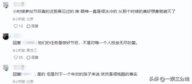 可昨天的一条动态下,有人评论他们对小孩并不友善,在电视上的样子都是节目效果。