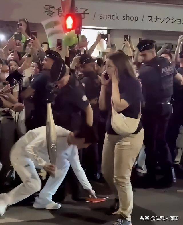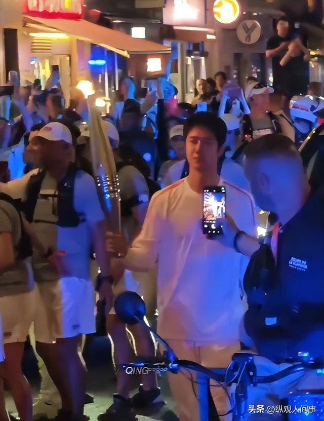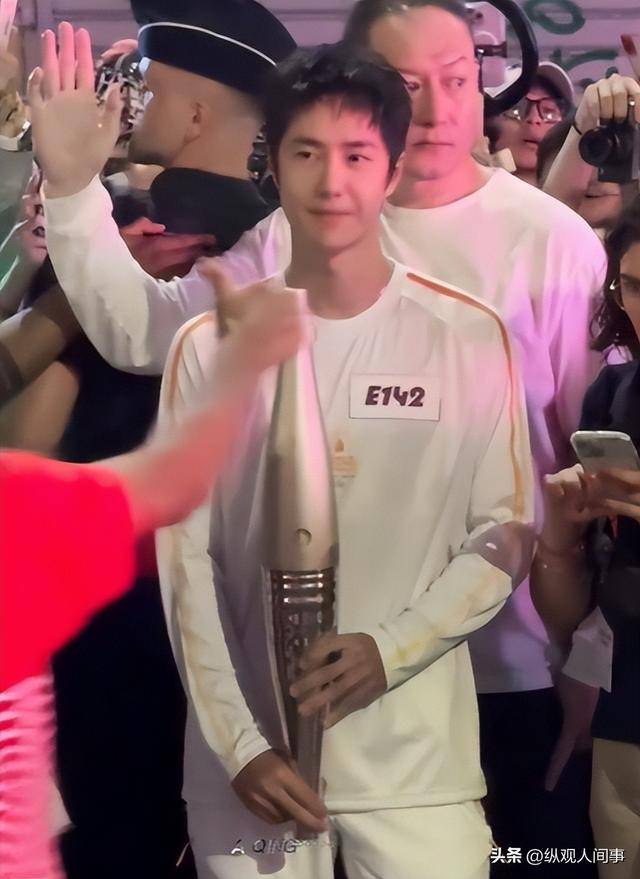 2024 年 7 月 14 日巴黎奥运会火炬传递现场,王一博在人潮拥挤的候场区,看到一面中国国旗掉落在地上,他立刻提醒维持秩序的警察不要踩到。