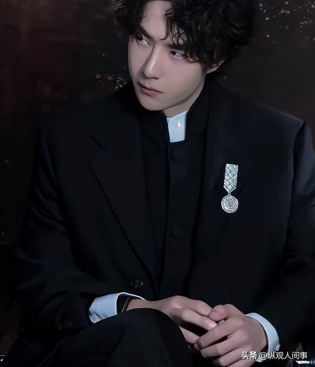一头慵懒微卷的黑发搭配高定深色西装,利落的剪裁衬得他身形挺拔,贵气感直接拉满。