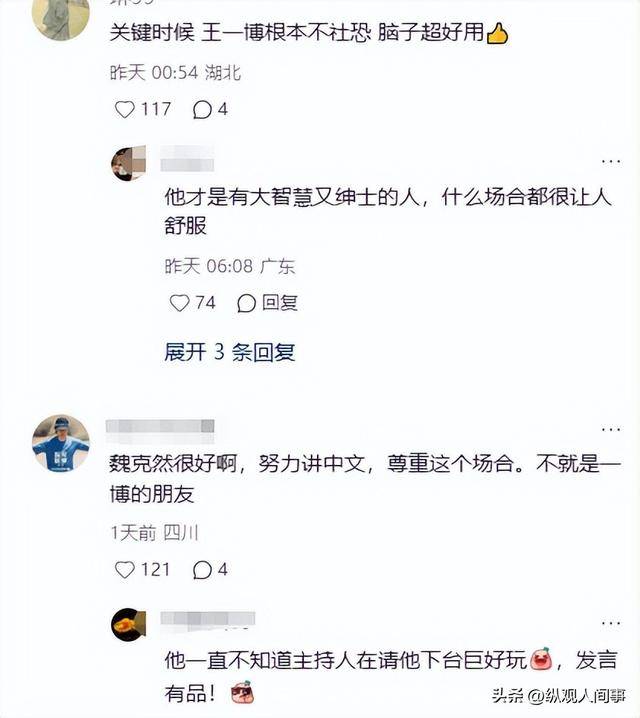 主持人全程只顾着 cue 王一博互动,完全忽略了身旁的外籍嘉宾,最后更是直接用中文示意魏克然下台,丝毫没有预留发言环节。