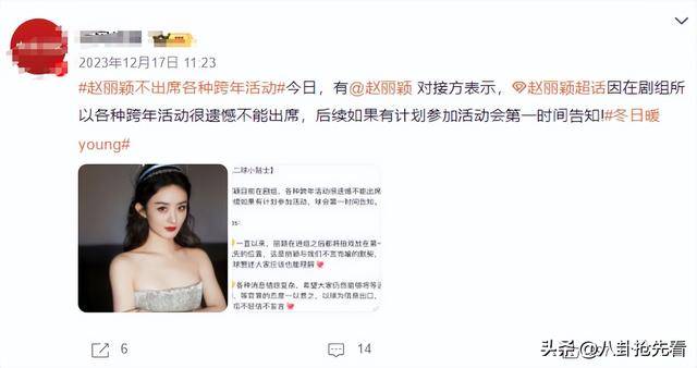 总的来说全都是大咖,这时候就有人好奇赵丽颖为什么不去,毕竟前段时间新剧刚播完,很多明星这时候都会多出来参加活动曝光自己。