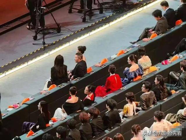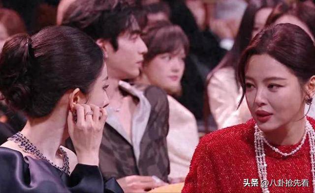 杨幂和一位男顶流明星坐在她的两边,结果开场前男明星的名牌被挪到了旁边,三个人的沙发瞬间变成了辛芷蕾和杨幂,