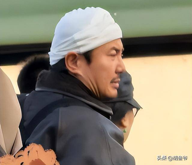 最吸睛的是他的头上,裹着一块白色的毛巾,头发被包在里面,那模样直接撞脸斗地主里的地主,喜感满满。