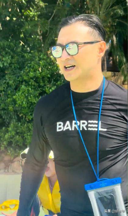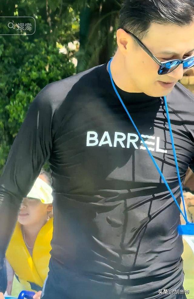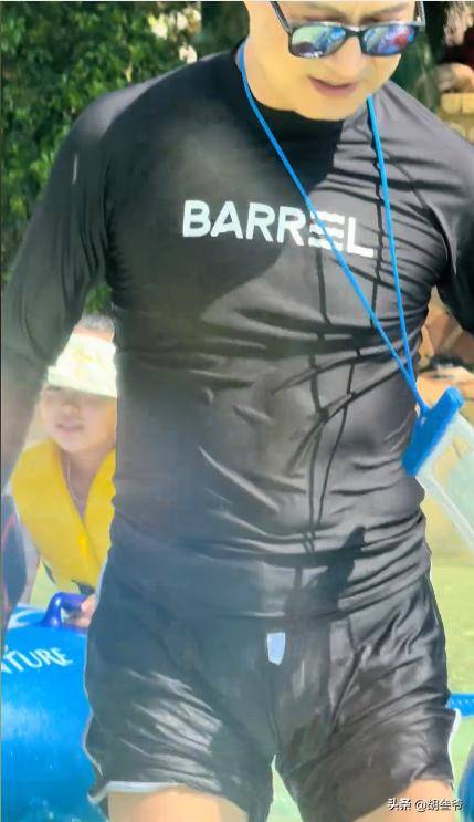 汪峰穿的是一身黑色的连体泳衣,本是想着修身遮肉,可紧紧贴在身上的布料,反倒把他的身材短板暴露得一览无余。