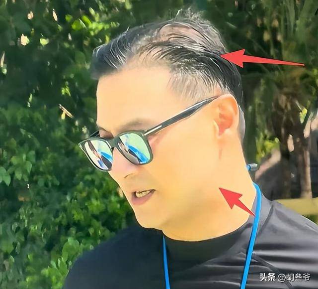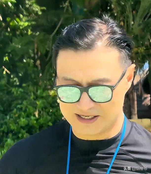 本就不算浓密的头发,在三亚的海风和海水折腾下,显得愈发稀疏,头顶的发缝宽得能看到头皮,发际线更是往后退了一大截,露出光洁又偏高的额头。