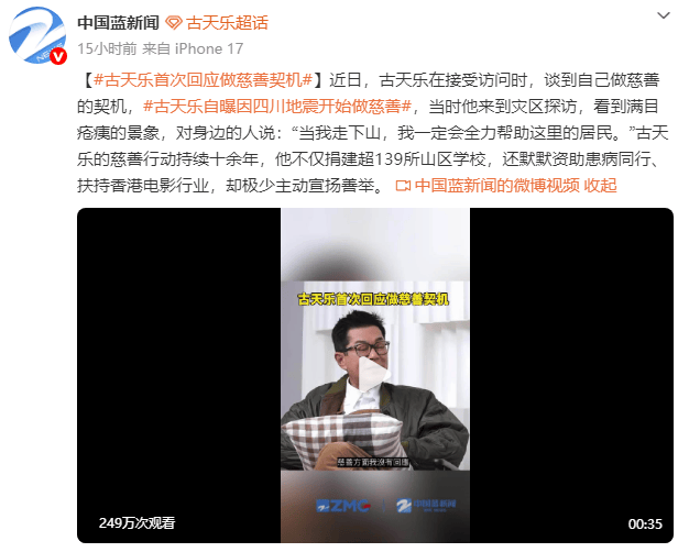 (来源:中国蓝新闻)近日,古天乐在接受访问时,谈到自己做慈善的契机,自曝因四川地震开始做慈善,当时他来到灾区探访,看到满目疮痍的景象,对身边的人说:“当我走下山,我一定会全力帮