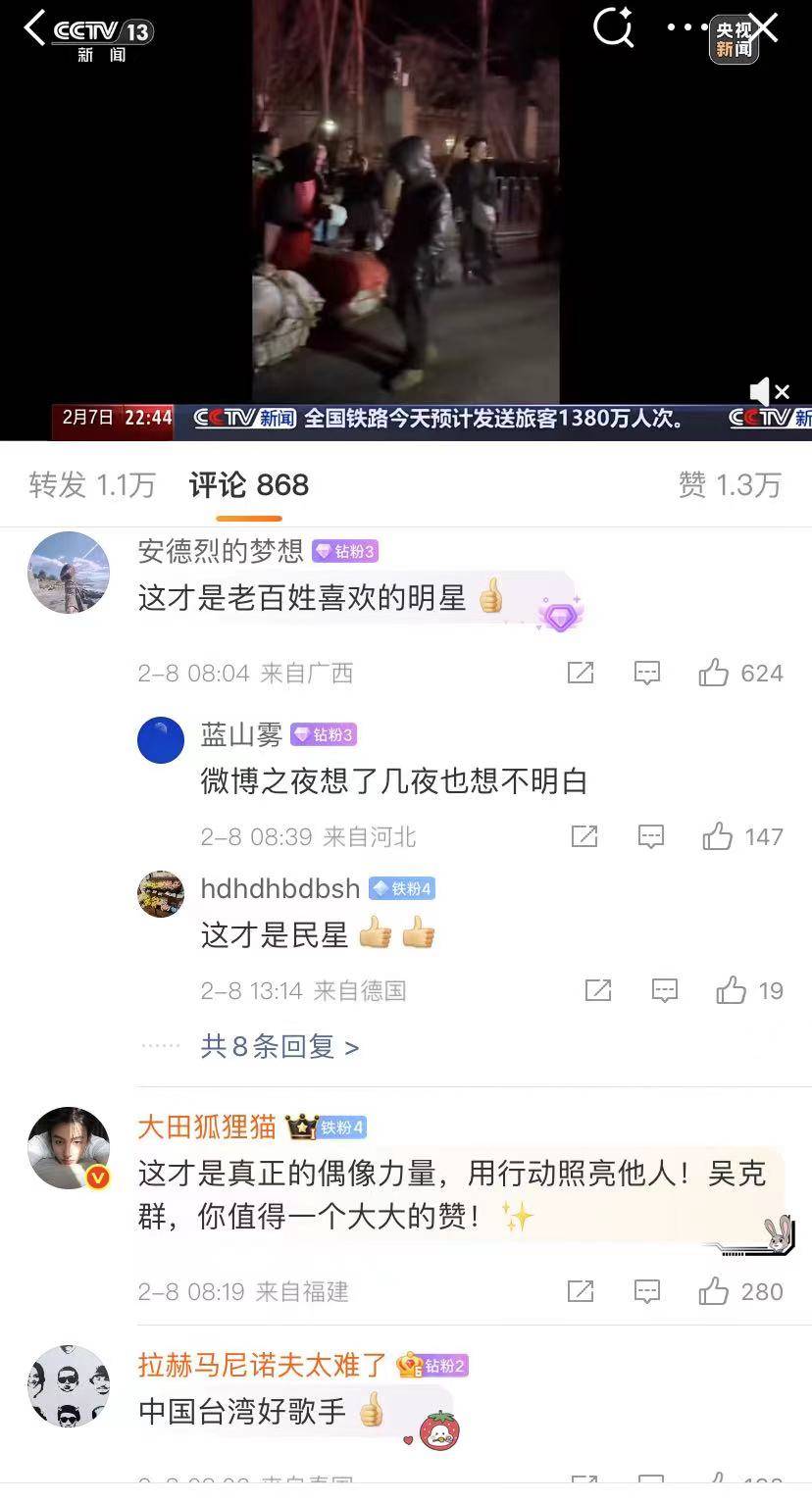很多网友都纷纷点赞,为吴克群加油,称他才是真正的偶像力量,用行动照亮他人!吴克群,值得一个大大的赞!