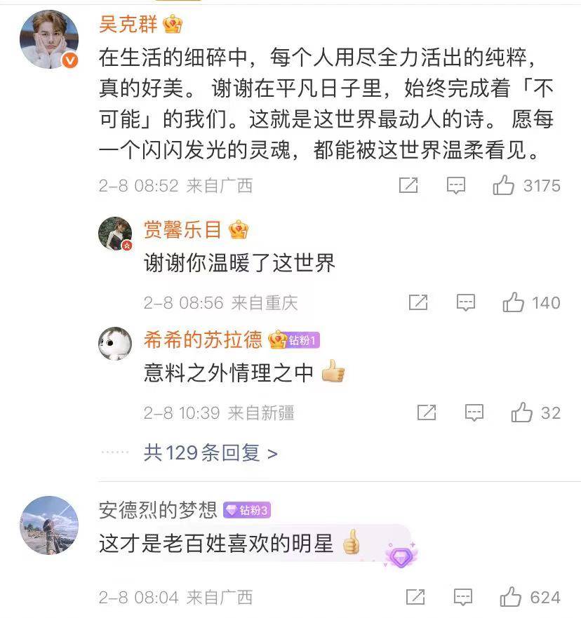 网友们都纷纷留言,谢谢他温暖了这个世界,这才是老百姓喜欢的明星。