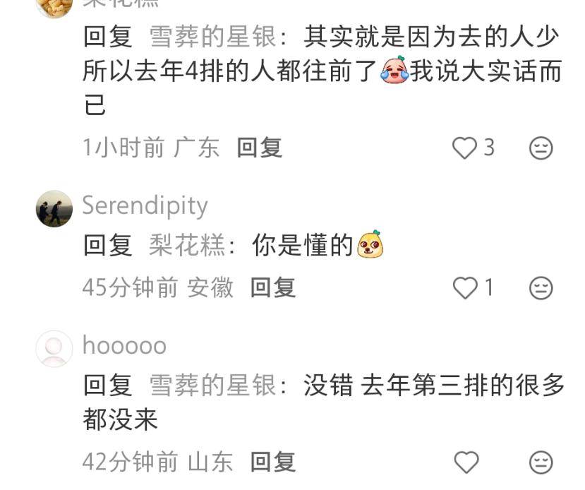 但也有明眼人点破真相,原来这次来的明星更少,去年排第三排的今年很多都没来。