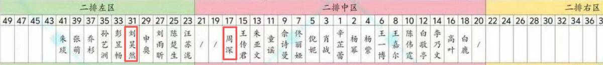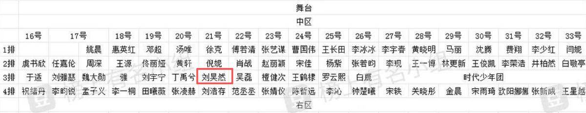 刘昊然也遭遇了“隐形降咖”,单看座位排数,他也算比去年前进了一排,但是仔细一看会发现,他上一年座位的含金量明显比这次更高。