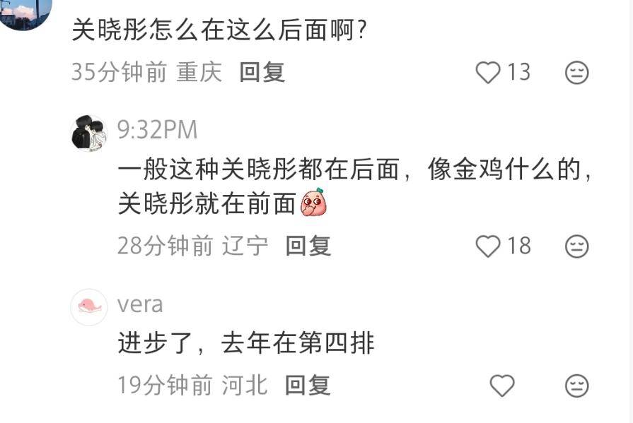 也有网友直言,这只能说明这平台并没有那么偏爱正剧咖,关晓彤在金鸡奖已经能跟其他电影大咖同排,也只有在微博之夜才会遭遇冷遇。