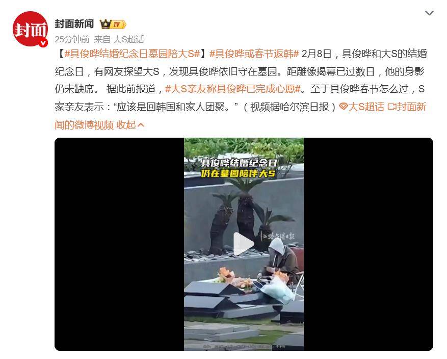 据此前报道,亲友称具俊晔“已完成心愿”。而在结婚纪念日这样本应两人共度的日子,他选择以最沉默的方式陪伴。至于接下来的春节如何度过,S家亲友透露,他“应该是回韩国和家人团聚”。