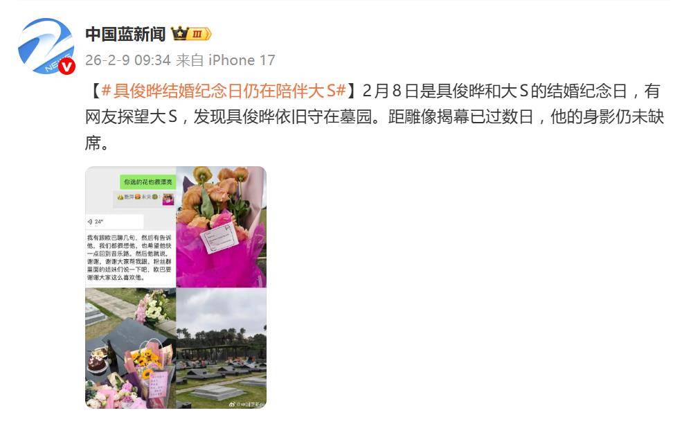 2月8日,具俊晔和大S的结婚纪念日。没有鲜花派对,没有公开庆祝,这位韩国艺人的身影,再次准时出现在台北金宝山墓园亡妻大S的墓碑旁。这一幕被网友偶遇并拍下,距离大S纪念雕像揭幕仅过去六天,他的坚守并未因任何仪式结束而中断。