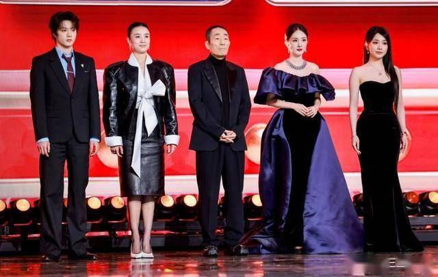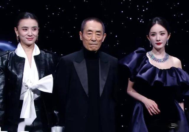 宋佳和杨幂一左一右站在张艺谋身侧,两位影后乖巧站在自己的位置上,俩人平分秋色不偏不倚。