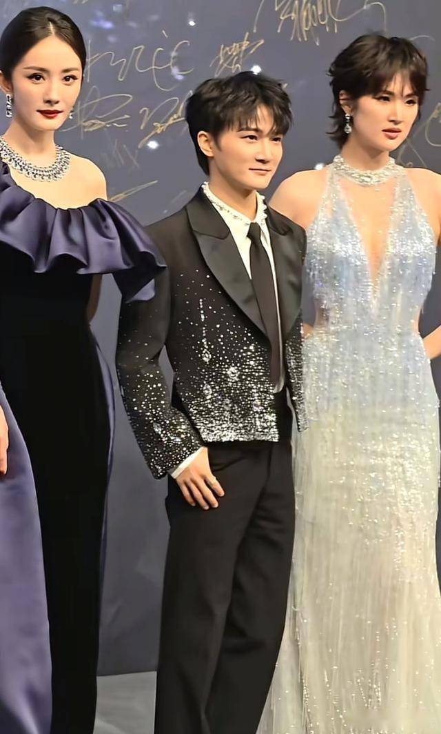 这次红毯两位女主角同框,C位之争避免不了,幸好张艺谋稳住了全局,直接站在C位避免了站位争夺。