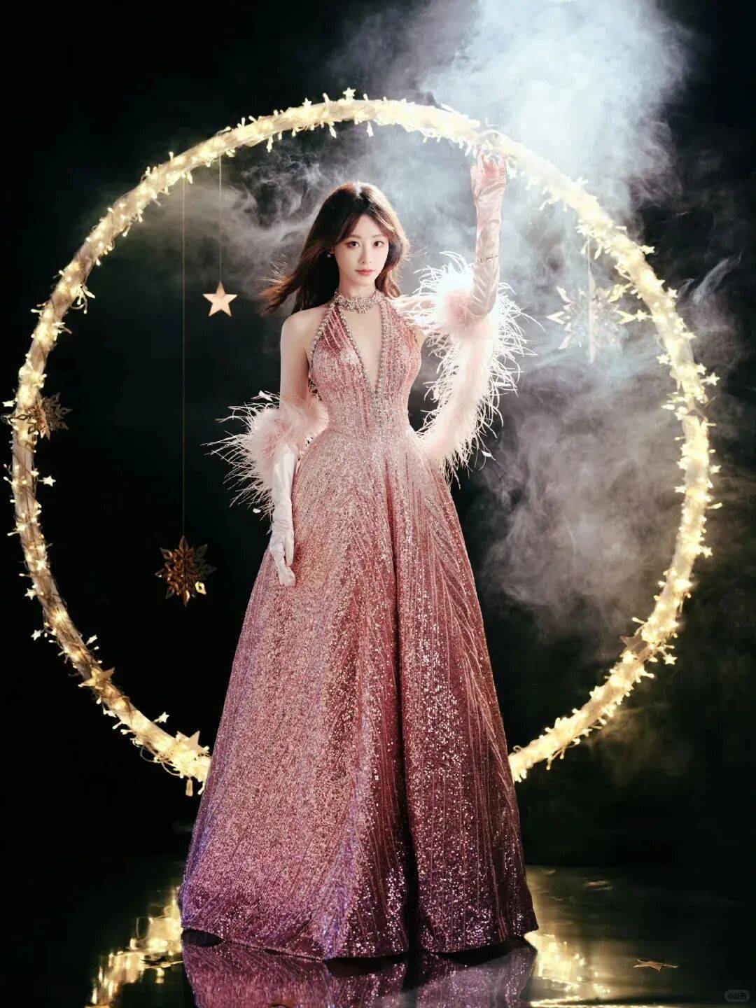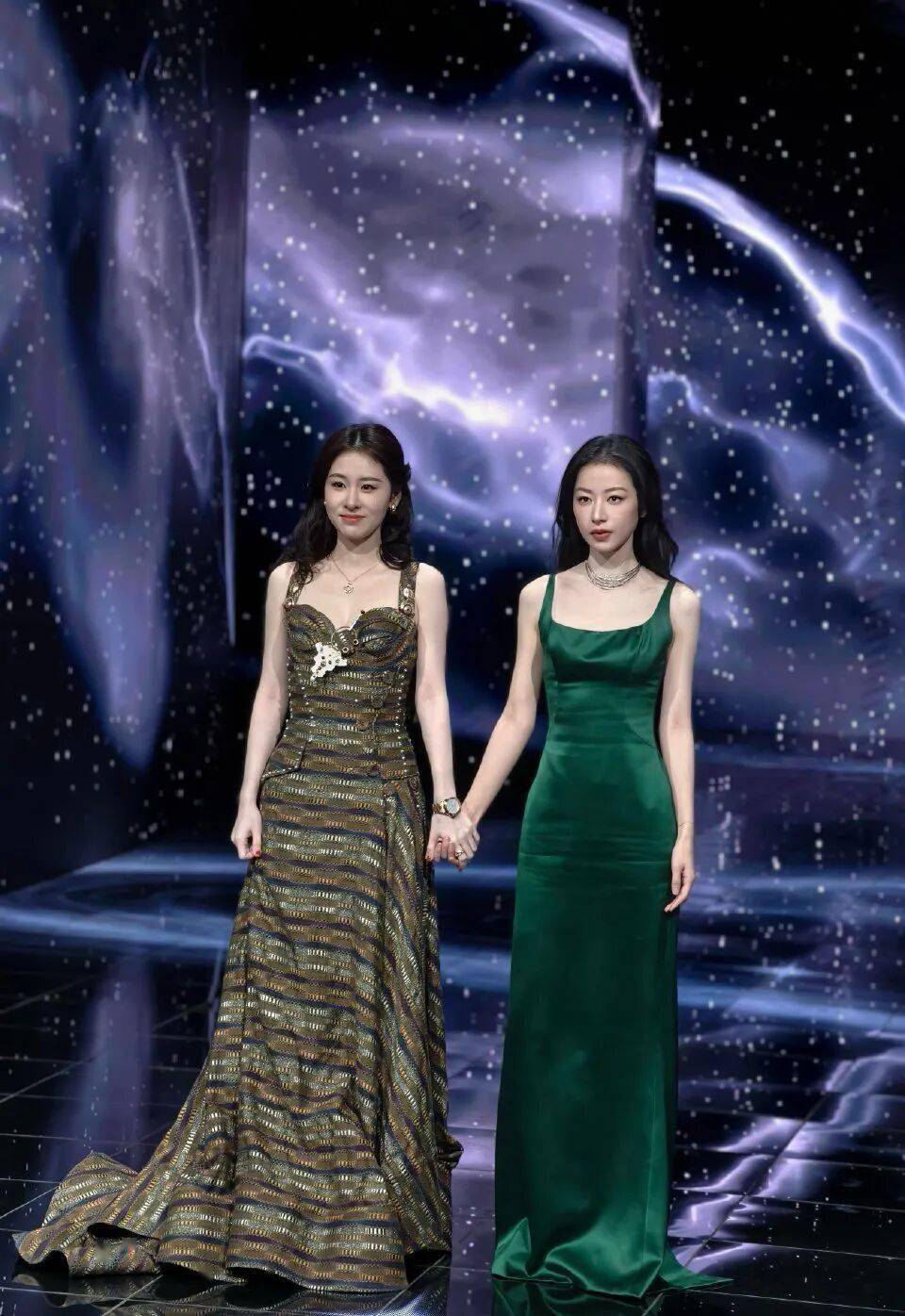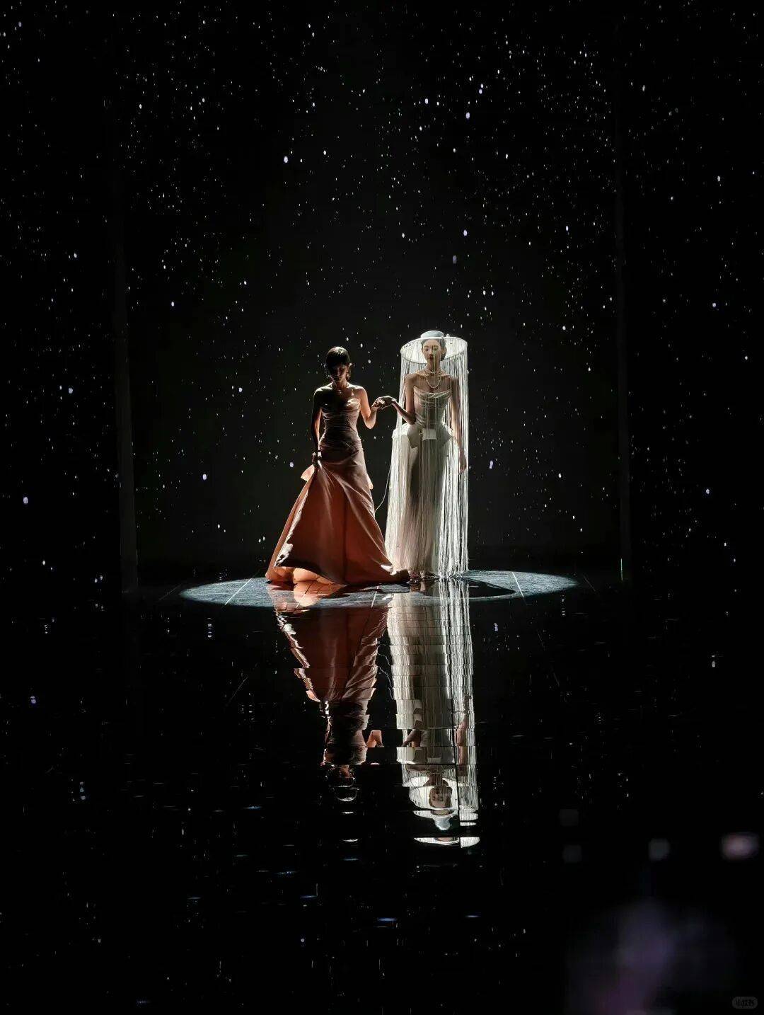 配合舞台灯光,宛如从漫天星辰中走来的神女,实在妙极。