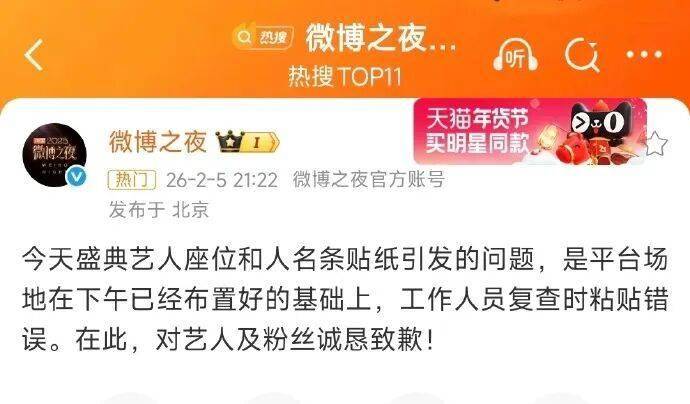 最后微博不得不出来道歉,说是贴错名牌,行吧,又是打工人背锅。
