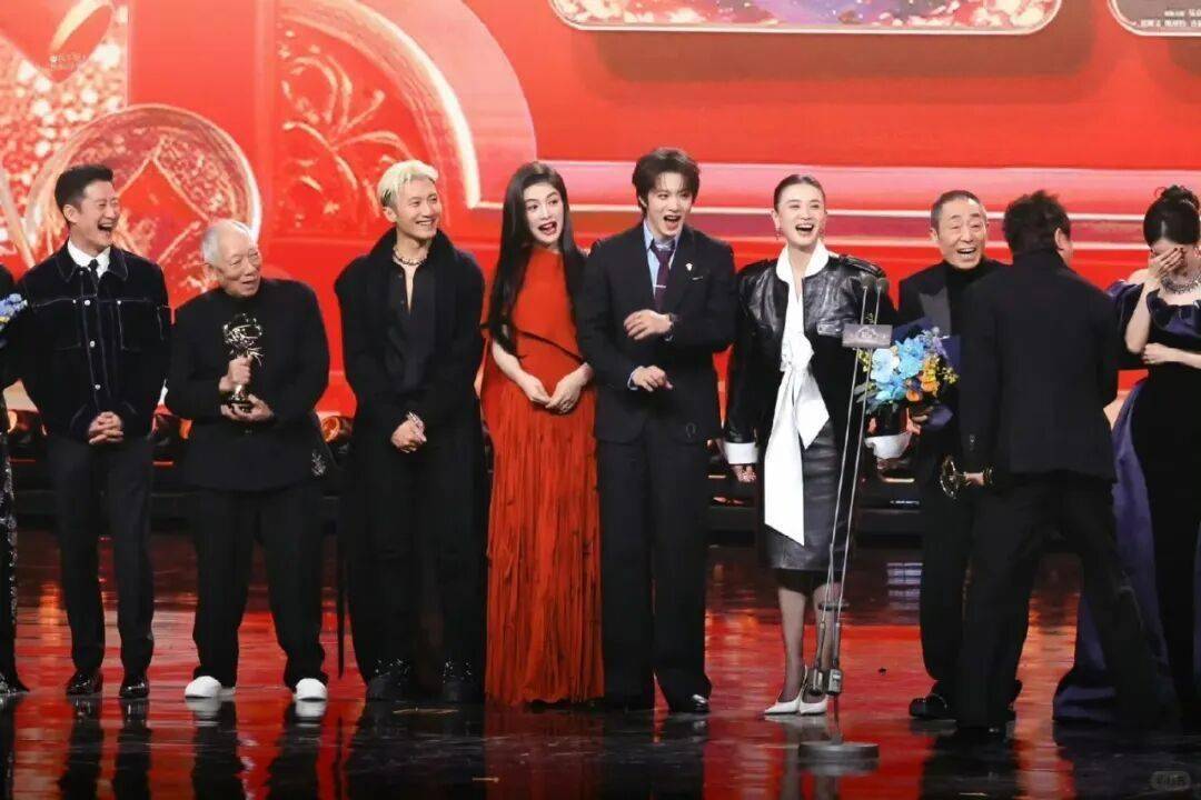 但让人迷惑的是,到了关键的颁奖环节,却穿了条松松垮垮的牛仔裤就走上去了???