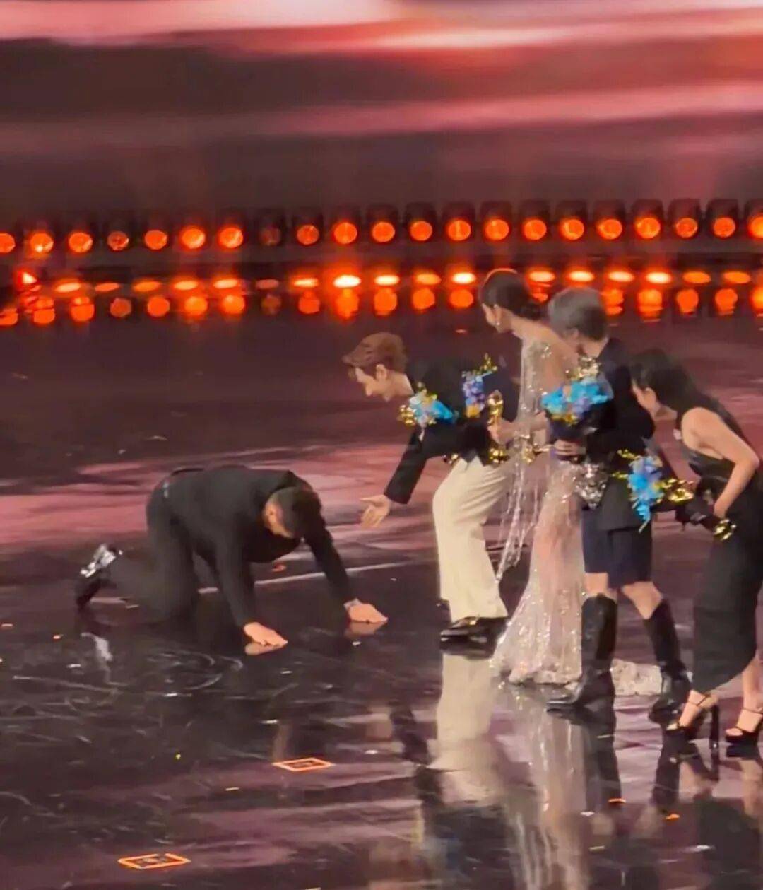 比如当晚最大“冥”场面,大麦老总上台颁奖,却意外滑跪。
