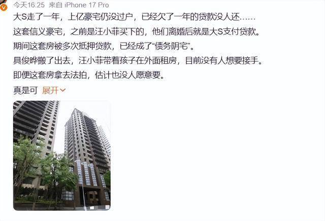 可是随着台媒爆出大S遗产的现状,网友对小S的印象再次崩塌,原来大S那套留下巨额贷款的豪宅至今无人过户。