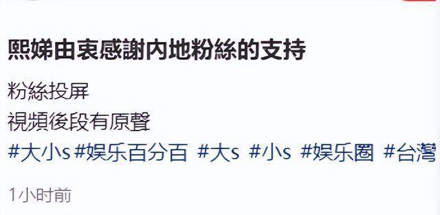 她最近为纪念大S做了很多暖心举动,还现身一个内地粉丝应援的音频,感谢粉丝。