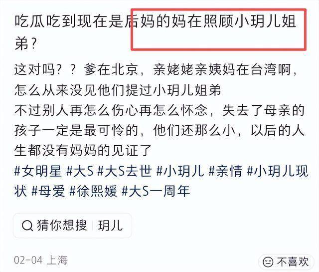也有网友扒出小S之前在节目上对大S儿女的凉薄吐槽,更能隐隐约约的感觉到,她并没有这么的爱这双儿女。