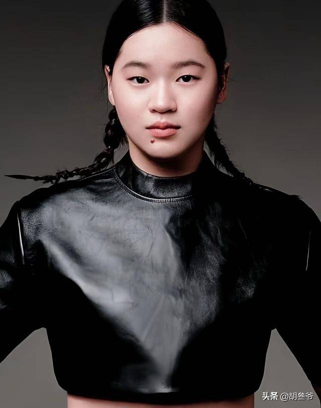 这次的造型更是让人眼前一亮,一身黑色露脐皮衣搭配高马尾贴头皮造型,酷劲十足,完全一改往日里青春稚嫩的模样。