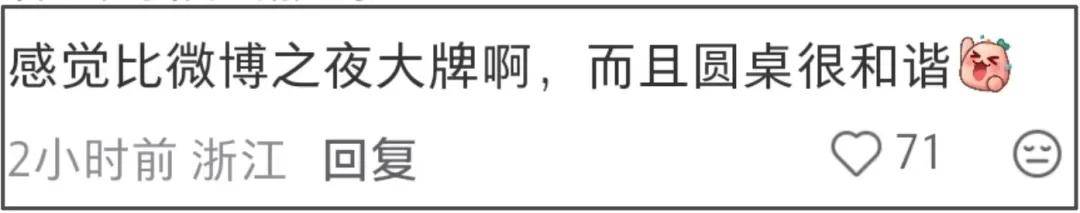 在网友看来,不愧是央视,只是一个春节档电影活动,阵容就不输微博之夜,更重要的是现场座位安排了圆桌,终于不会出现抢C位的情况了。