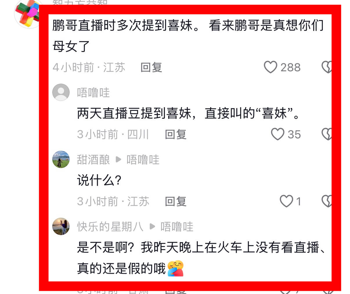 还有蹲李亚鹏直播间的网友,说前天李亚鹏称呼金喜夏夏妈妈、昨天说的是喜妹、以前订单的收货人是程女士。这些细节也说明,李亚鹏和海哈金喜的感情正在升温。