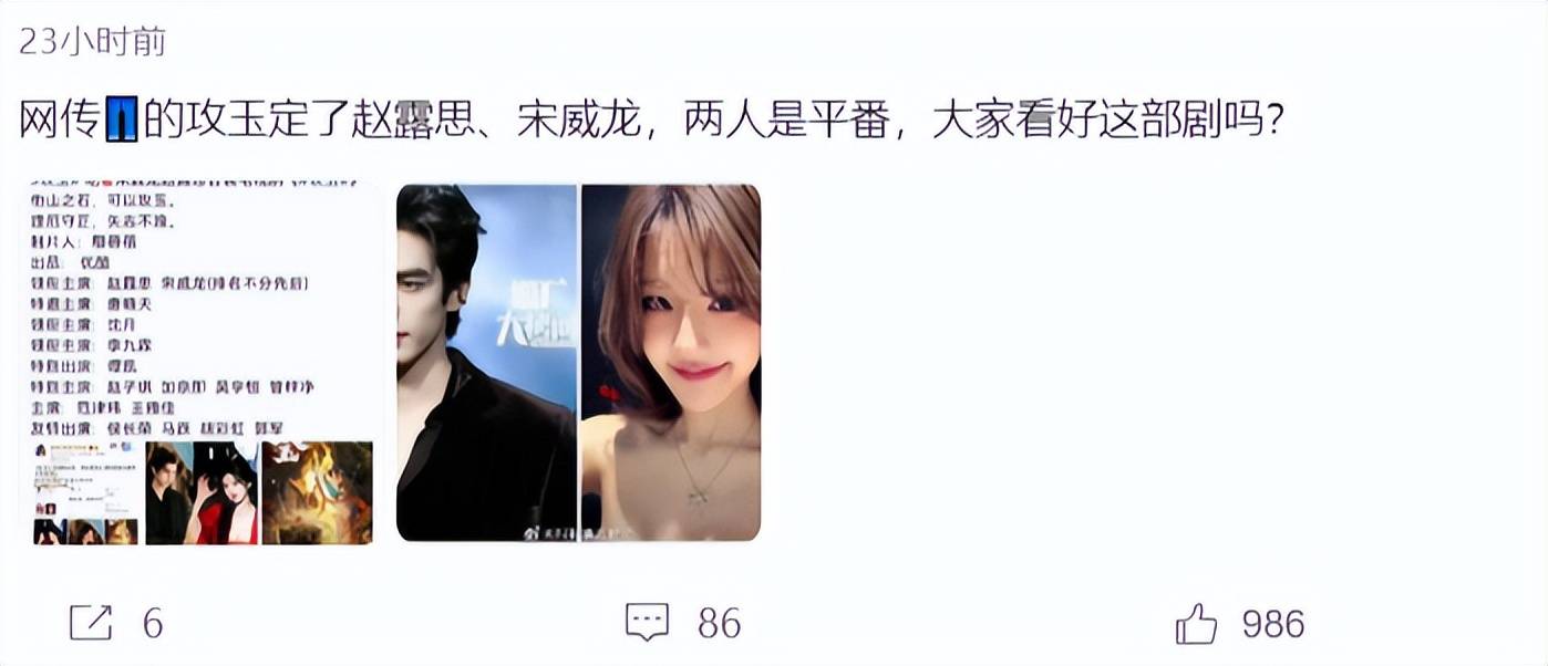 赵露思和宋威龙都是自带热度的演员,如果他们两人真的能出演《攻玉》,这绝对是强强联合的,但我们要知道,一部剧是有番位的,所以大家好奇《攻玉》的番位安排。