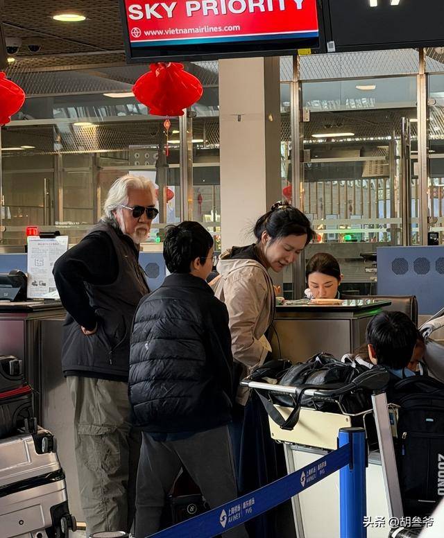 2月9日的上海机场,不少网友偶遇了张纪中杜星霖一家五口。