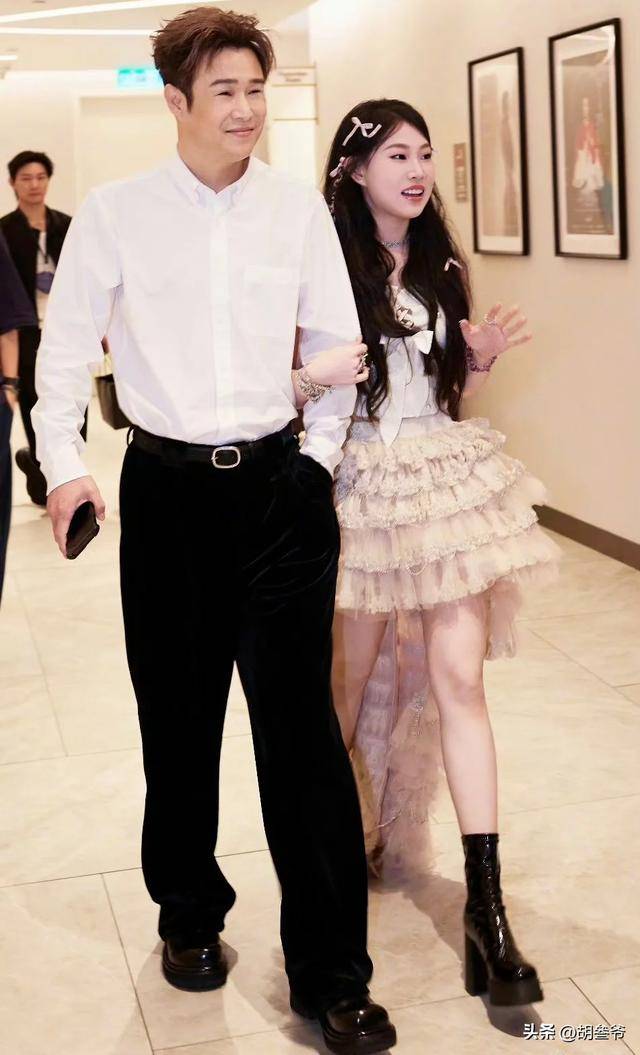 怕女儿穿着礼服走路不方便,还特意设计了 “被抬离舞台” 的喜剧桥段,硬生生把 C 位让给了女儿。
