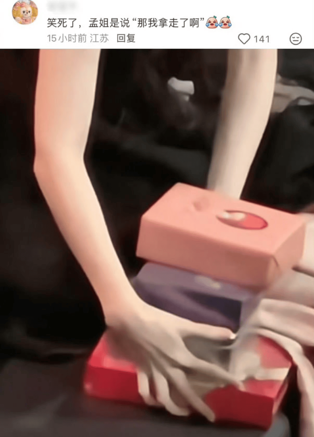 但事情远不止这么简单!这四盒饼干里只有一盒是孟子义自己的,其他三盒都是她“顺手牵羊”来的。原来邻座丁禹兮的饼干没带走,孟子义主动询问后,丁禹兮两手一摊:“我没袋子,你拿去吧!”于是孟子义抱着四盒饼干健步如飞,边跑边喊:“带回去给工作人员吃!”这波操作直接让网友笑疯:“丁禹兮:我成全了你的饼干自由?”“孟子义:这波叫资源回收再利用!”