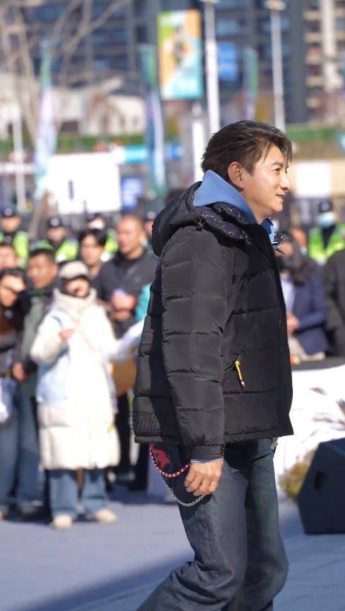 再看他穿的衣服,一件黑色的棉袄裹在身上,鼓鼓囊囊的,显得特别臃肿,一点明星架子都没有,甚至还有点土气,和我们身边的普通中年人没两样。