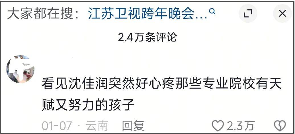从网友们的批评声中不难看出,大家最在意的点在于沈佳润没有足够的实力,但是却有着源源不断的资源。尽管跨年舞台跑调大翻车,但她的事业却丝毫没有受到影响。跑调争议之后,她不仅和父亲小沈阳合拍了某品牌的新春广告大片,还资源升级,和成龙一起为春节档影片演唱推广曲。
