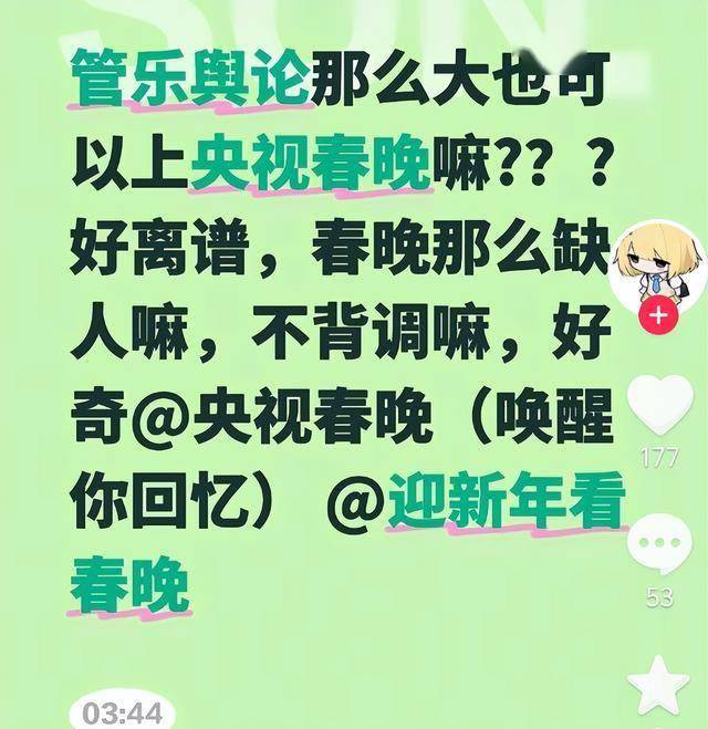 反倒是在彩排里出现的管乐,因为之前做的奇葩事,已经被网友给抵制上春晚了。