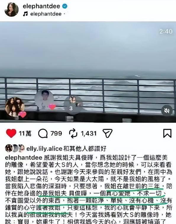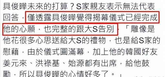 具俊晔举办大S雕像揭幕仪式时,S家全员出席,为其站台。