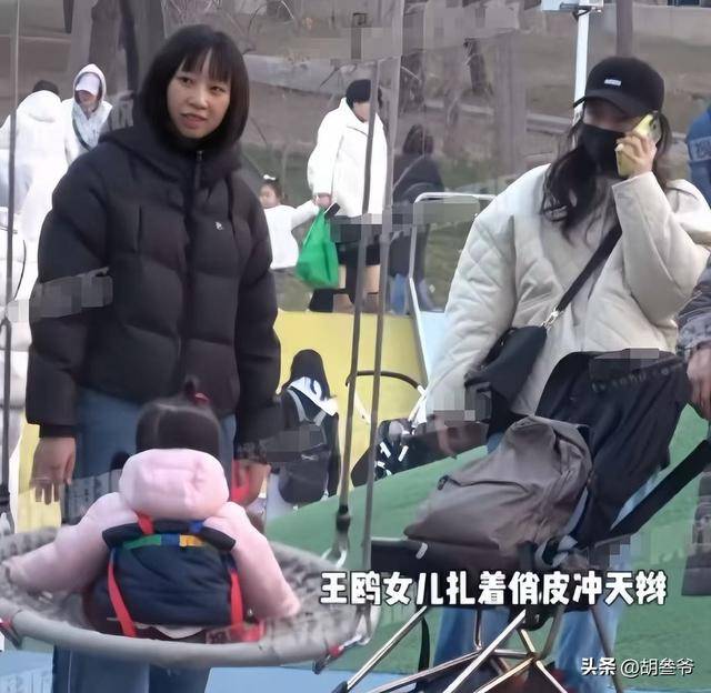 女童穿着粉色的小袄,扎着两个朝天揪,迈着小短腿撒欢似的跑,王鸥一路小跑跟在身后,满脸都是宠溺。