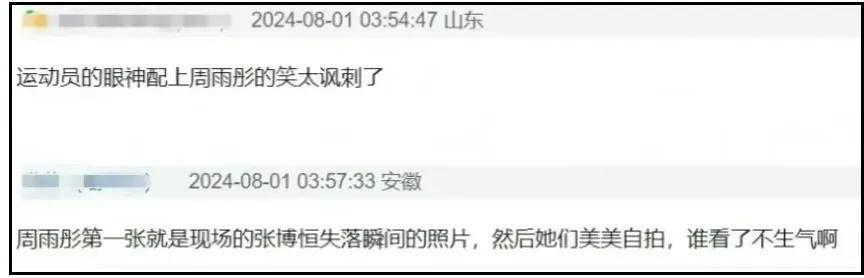2024年巴黎奥运会,周雨彤跟着花少团到现场观赛,亲眼目睹中国体操运动员张博恒遗憾摘银,然后周雨彤做了什么呢?