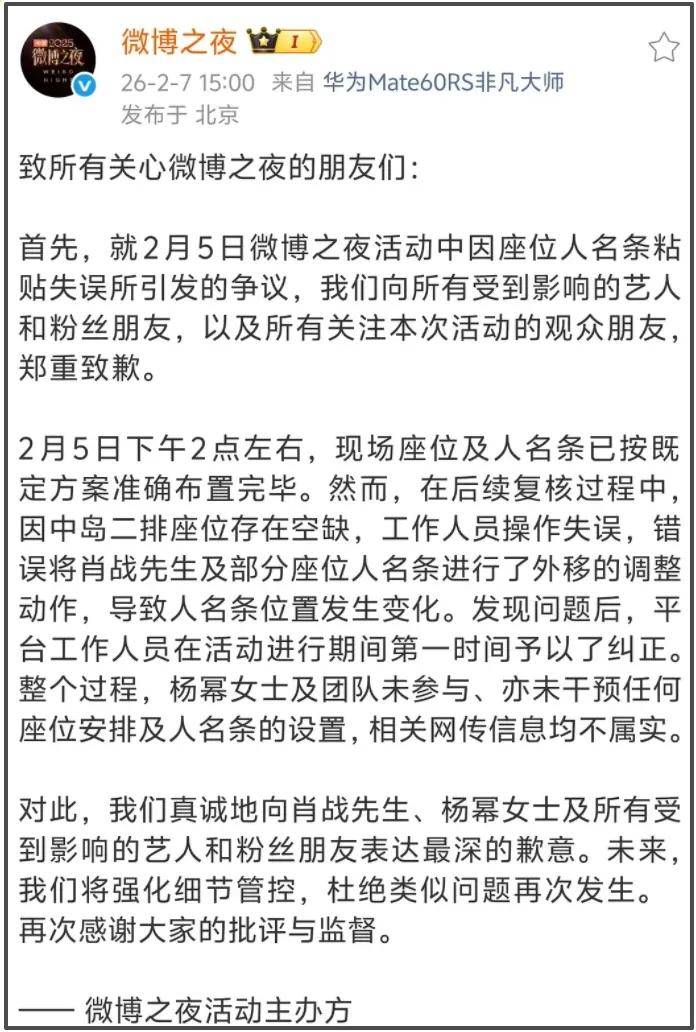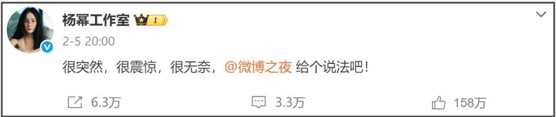 微博之夜时的抢C位风波余波未平,当时,杨幂方面对争议的回应就是工作室发文“很突然,很震惊,很无奈”并且艾特微博之夜,让其给个说法。微博之夜活动主办方确实给了说法,只是全篇都是官方的推诿之言,难以让大众信服。