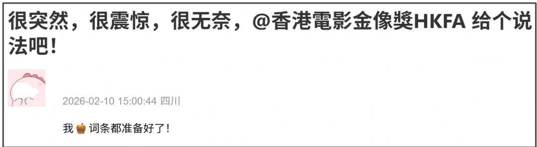 看热闹不嫌事大的网友当然不会放过这个嘲讽杨幂的机会,他们不约而同地发出同样的文字,那就是“很突然,很震惊,很无奈,@香港电影金像奖给个说法吧”,还制作了同样文字的表情包。
