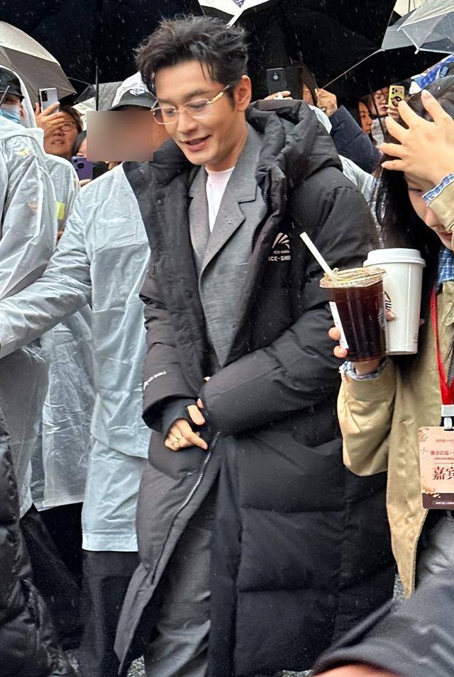 黄晓明也没摆架子,停下来跟大家挥了挥手,还提醒“别淋着雨”,说话时声音有点轻,可能是最近没休息好。