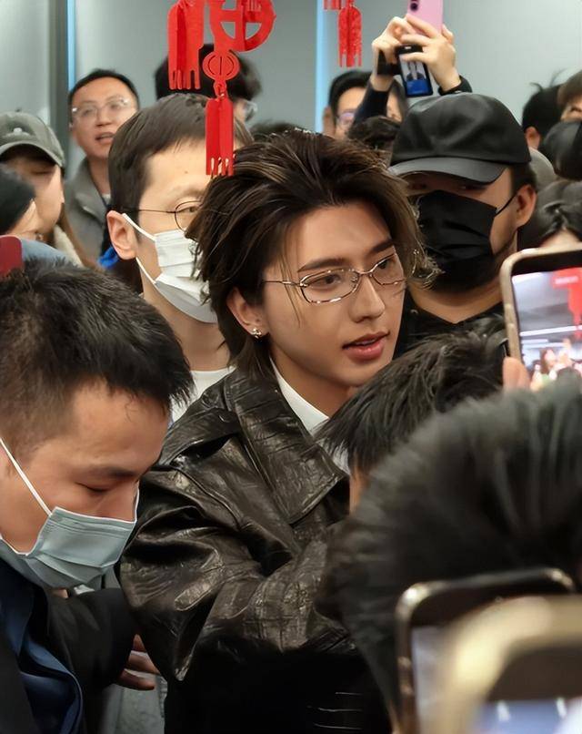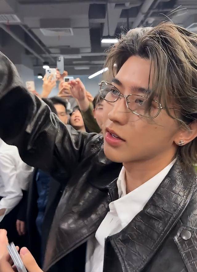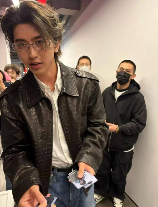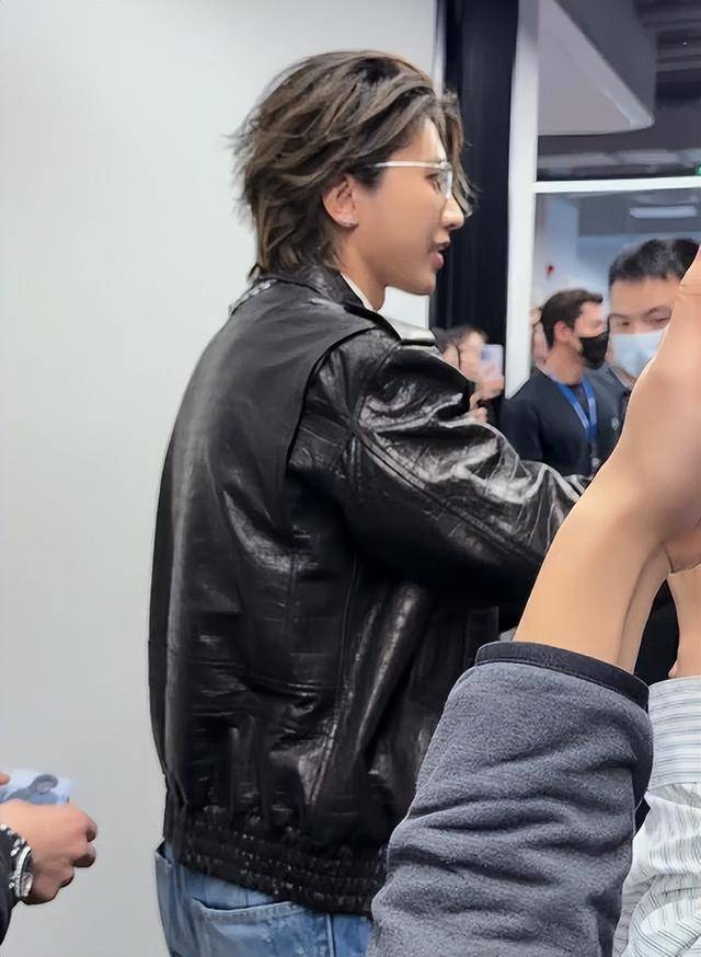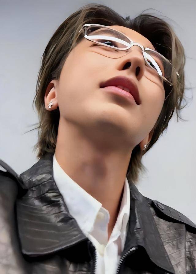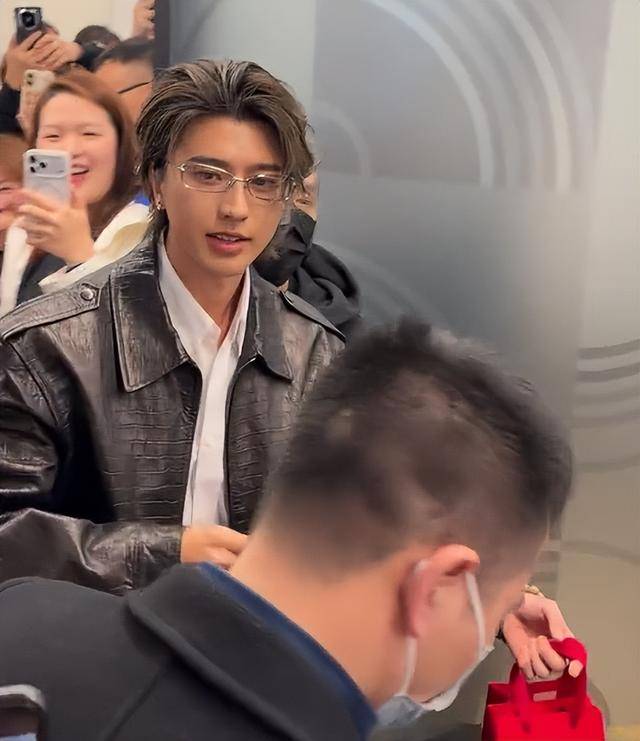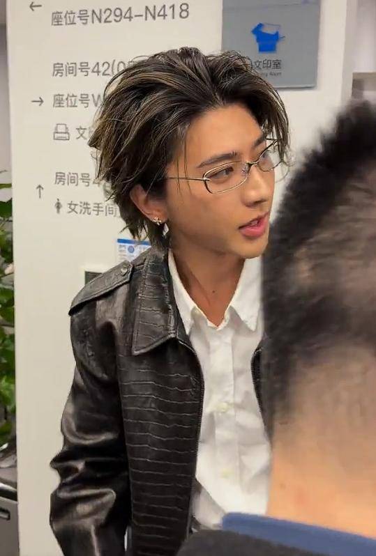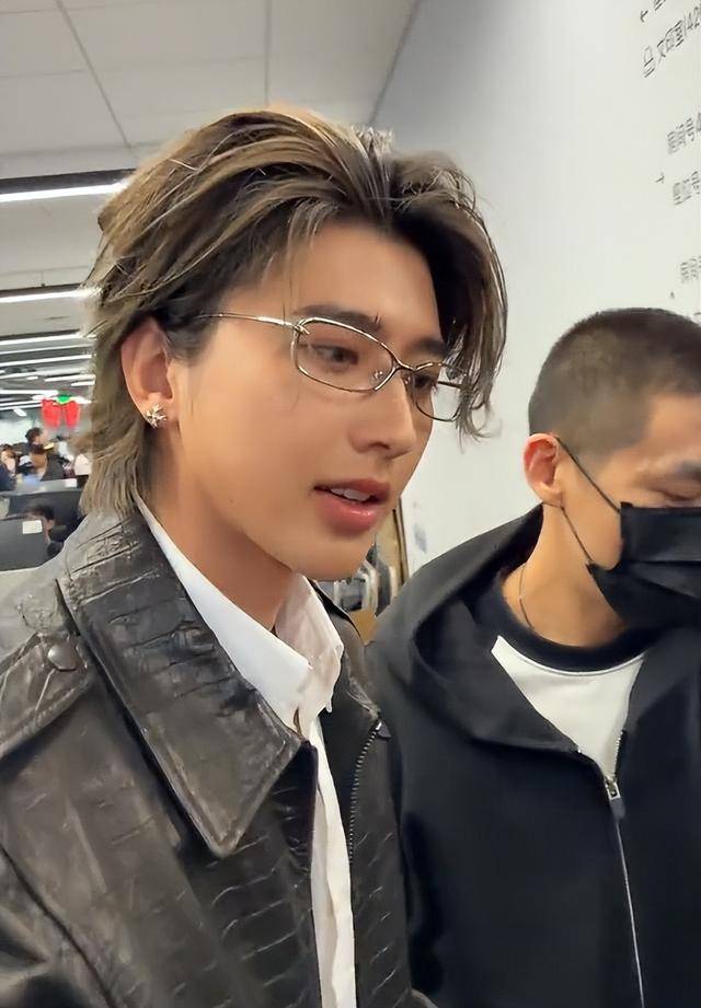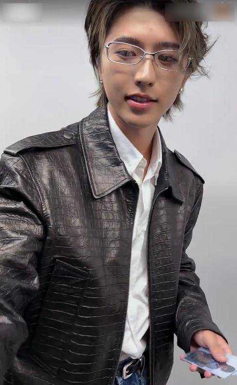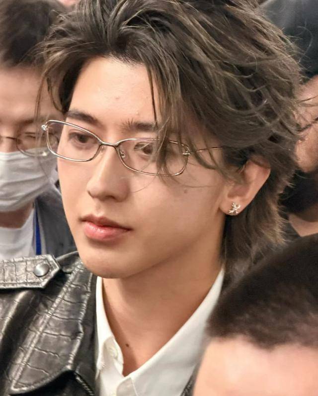 脸上戴着银色框的眼镜,头发梳得整齐却不僵硬,额前留了几缕碎发,走动时会轻轻晃,比平时舞台上的“精致狠活”多了份活人感。