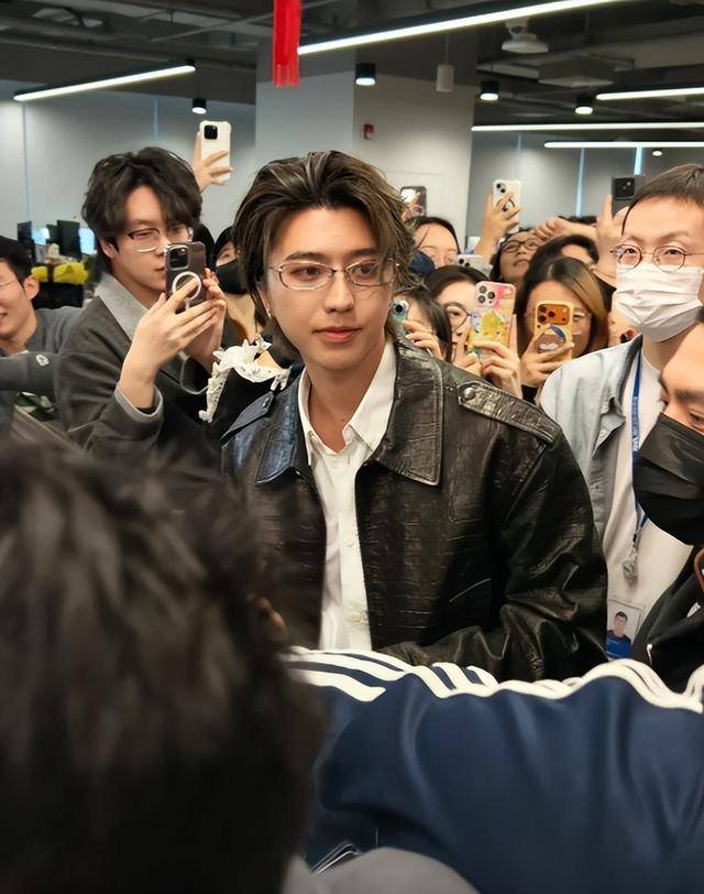 有个女员工举着手机怼脸拍,距离近到能看见他的睫毛,后来把照片发在内部群,大家都惊“原相机能拍成这样,真人得帅到窒息吧”。