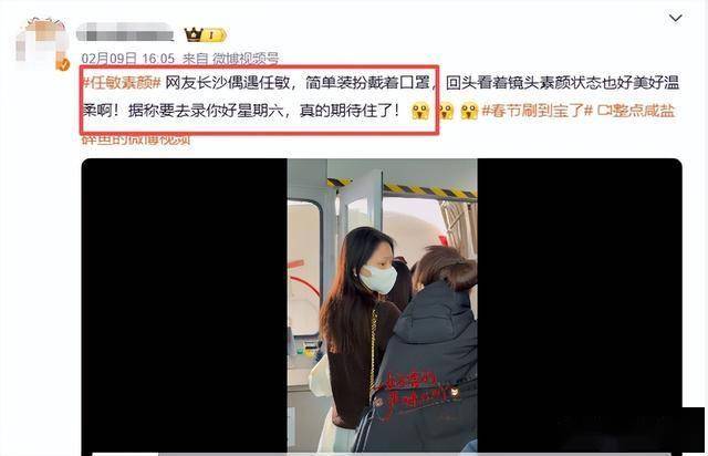2026 年 2 月 9 日,# 任敏素颜 #稳稳登上微博热搜,一众网友在长沙机场偶遇了赶往录制现场的任敏。