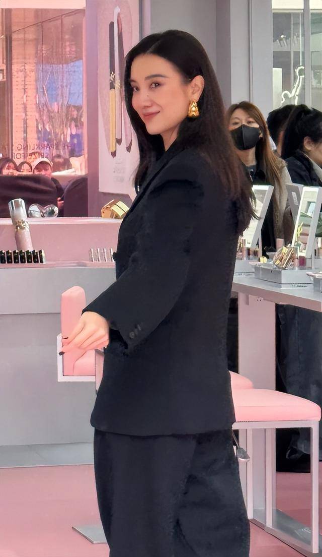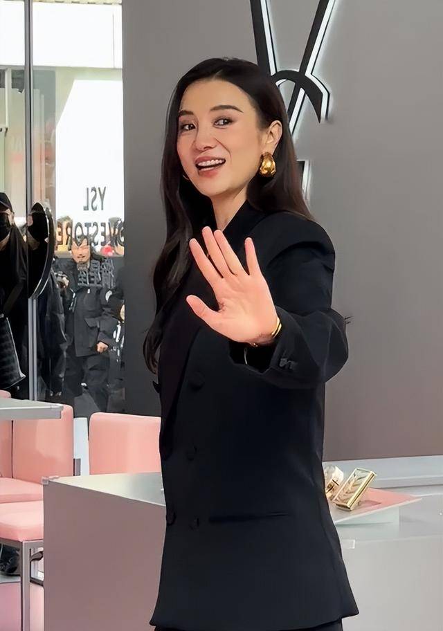 更意外的是,以前总扎紧绷丸子头的她,这次披肩黑发垂在肩头,连气质都变软萌了,生图里脸蛋紧致得不像40+。
